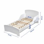 Pat copii cu protectie laterala si raft depozitare carti si jucarii model Norisor 3-8 ani din lemn MDF alb