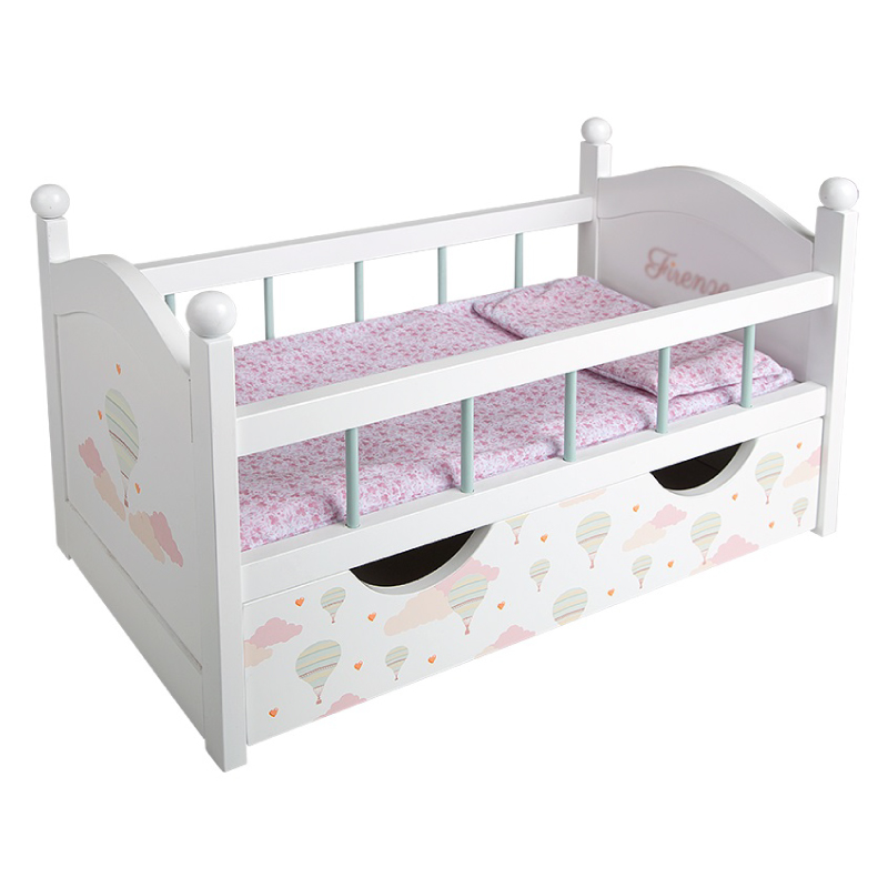 Pat din lemn Arias Firenze cu sertar pentru papusi 52.5x29.50x32 cm