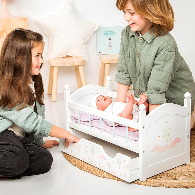 Patul cu sertar pentru papusi Arias a fost realizat cu materiale de inalta calitate care garanteaza o durata lunga de viata a produsului. Include perna si pilota asortate.