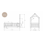 Pat pentru copii casuta montessori, Little Amy, MiniNest, balustrade orizontale, Natur, 80x160 cm