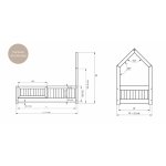Pat pentru copii casuta montessori, Little Amy, Mossy, balustrade cu bare rotunde, Natur, 90x180 cm