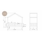 Pat pentru copii casuta montessori, Little Amy, Stillwood Cottage, balustrade cu bare plate, Natur, 90x180 cm