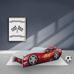 Pat pentru copii masina Fulger McQueen Alb cu saltea, 2-8 ani, 140x70 cm