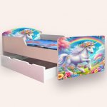 Pat pentru copii Unicorn varianta 2, cu sertar, 2-8 ani, 140x70 cm