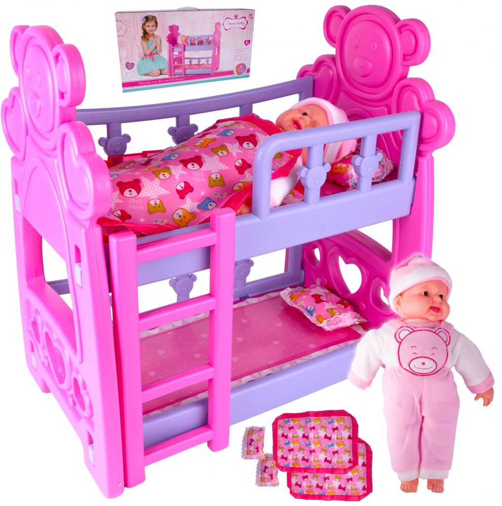 * Un pat supraetajat fermecător cu o păpușă, perfect pentru copiii mici cu vârsta peste 3 ani