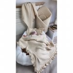 Paturica de infasat Qmini, 75x75 cm, Muselina dubla, Cu panglica, Warm Beige