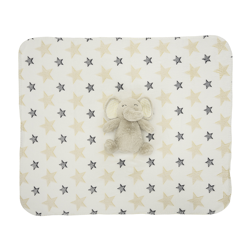 Paturica moale cu jucarie din plus Nappy Elefant Beige 90 x 75 cm 0 luni+