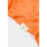 - Este realizat din 50% modal+50% bumbac - material certificat GOTS, delicat cu pielea gingasa a a bebelusului. Printurile sunt cu vopseluri pe baza de apa si toate produsele sunt in concordanta cu standardele GOTS.
