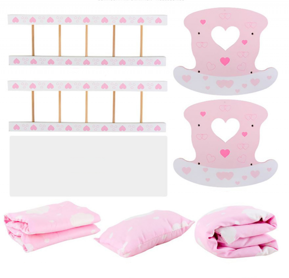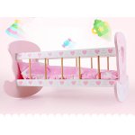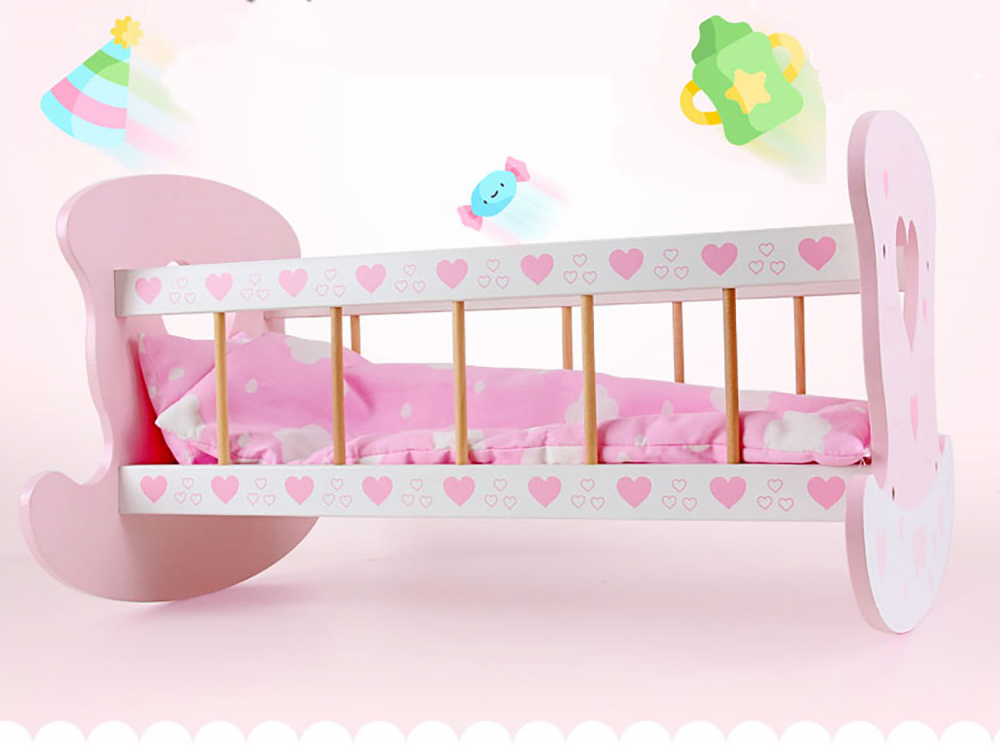 Patutul balansoar pentru papusi este foarte bine detaliat si este insotit de asternuturi.