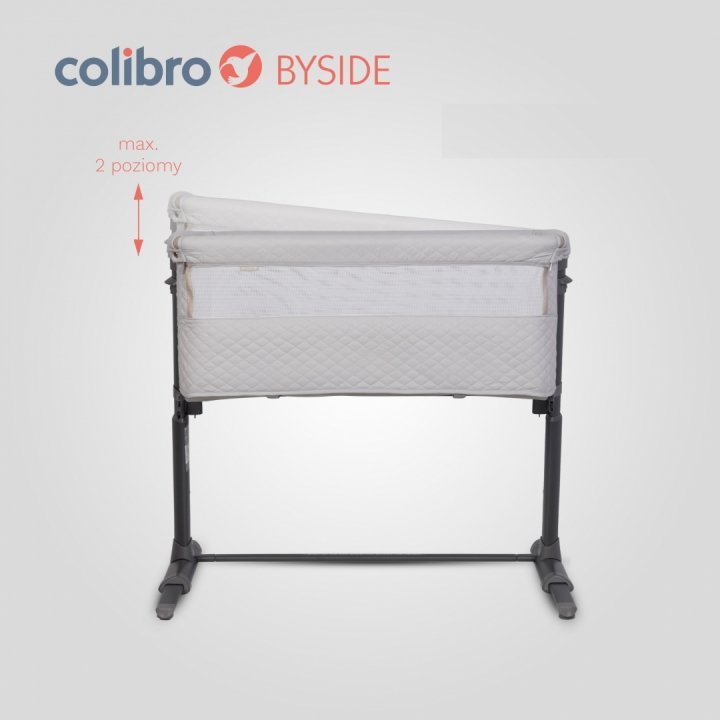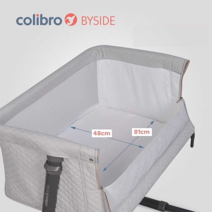 Patut Co-Sleeper 2 in 1 pentru copii Colibro BySide Bassinet, cu saltea inclusa, inaltime reglabila pe 9 nivele si unghi de inclinare de 30 de grade, sistem automat de retractare picioare, dimensiune 93 x 58 cm, Cloud