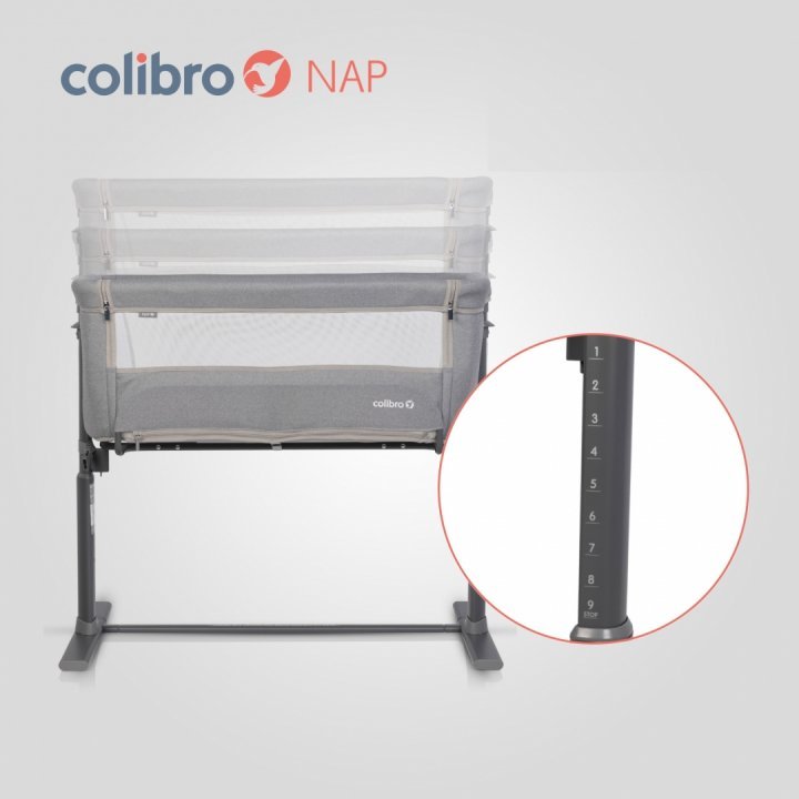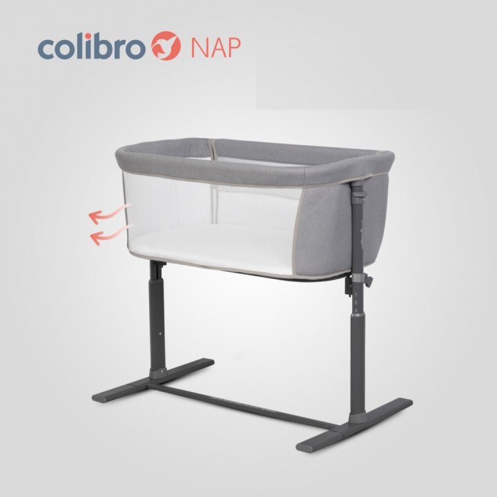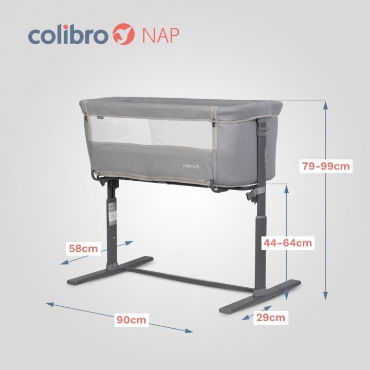 Patut Co-Sleeper 2 in 1 pentru copii Colibro Nap Bassinet, cu saltea inclusa, inaltime reglabila pe 9 nivele si unghi de inclinare de 30 de grade, dimensiuni 90 x 58 cm, Dove