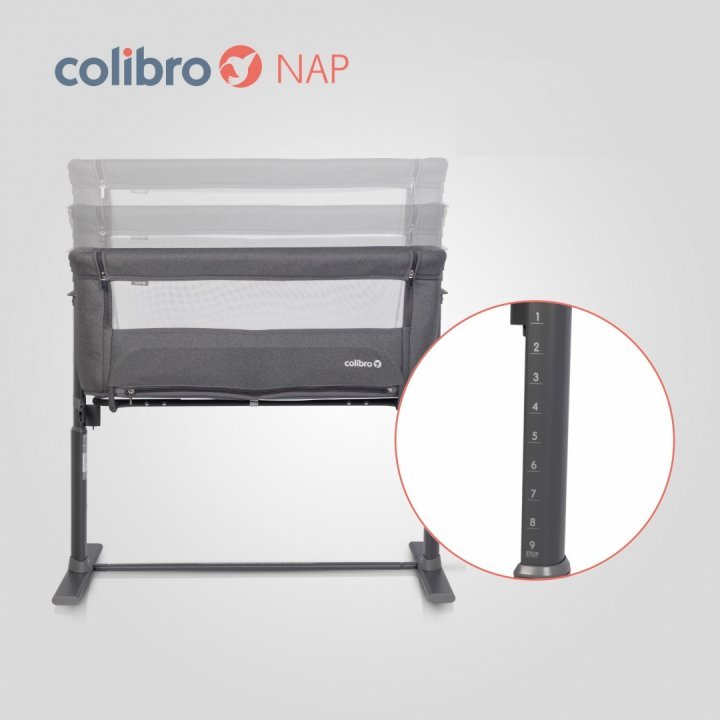 Patut Co-Sleeper 2 in 1 pentru copii Colibro Nap Bassinet, cu saltea inclusa, inaltime reglabila pe 9 nivele si unghi de inclinare de 30 de grade, dimensiuni 90 x 58 cm, Onyx
