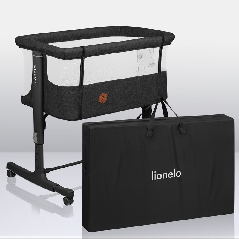 Patut co-sleeper 3 in 1 Lionelo Aurora cu leganare si setare unghiulara gri inchis