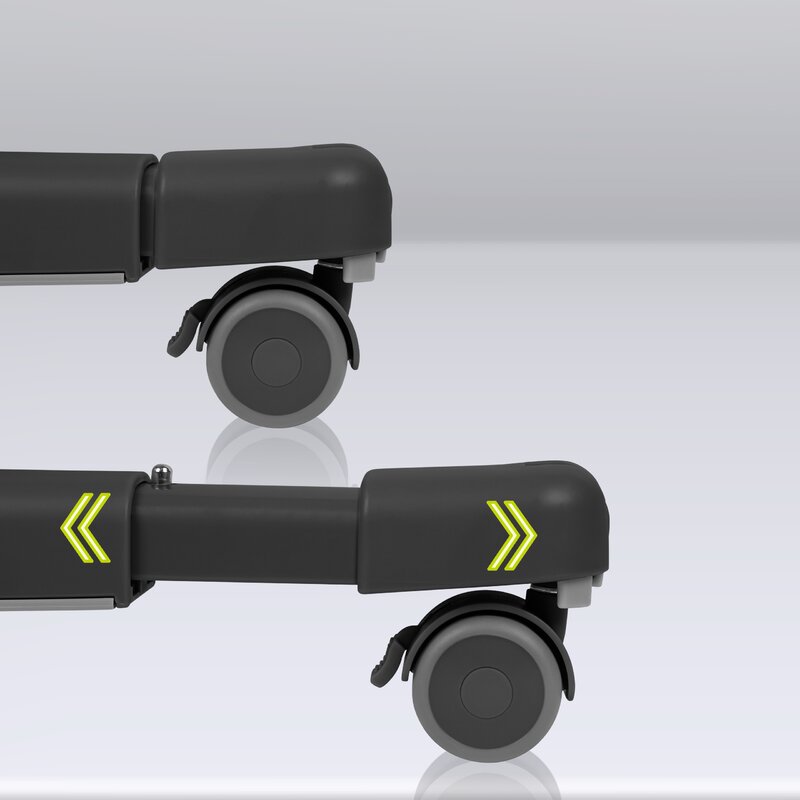 4 roti confortabile cu functie de blocare va permit sa schimbati rapid locul patutului ori de cate ori aveti nevoie. Si daca nu aveti nevoie de ea sau decideti sa o luati cu dvs. intr-o calatorie - o puteti impacheta in geanta de transport inclusa in set.