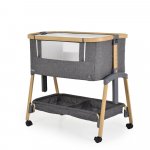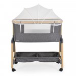 Patut Co-Sleeper Cangaroo Amo Dark grey 91x49x89 cm cu laterala culisanta,fixare langa patul parinteluI,inaltime reglabila in 7 pozitii,roti cu blocare,raft pentru accesorii,pozitie antireflux,saltea si plasa insecte inclusa