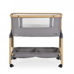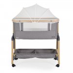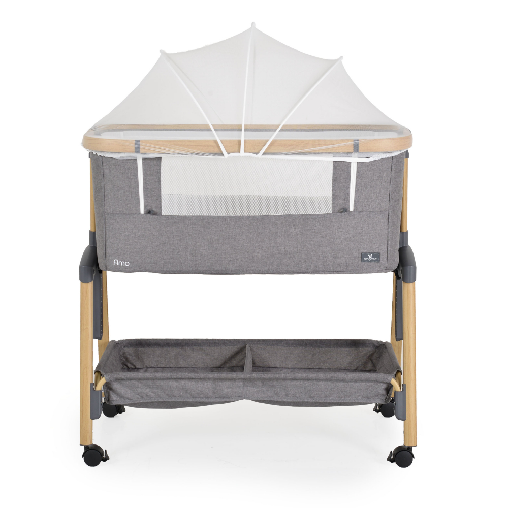 Patut Co-Sleeper Cangaroo Amo Light grey 91x49x89 cm cu laterala culisanta,fixare langa patul parinteluI,inaltime reglabila in 7 pozitii,roti cu blocare,raft pentru accesorii,pozitie antireflux,saltea si plasa insecte inclusa
