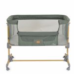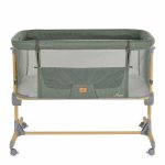 Patut Co-Sleeper Cangaroo Aura Green 88x56 cm cu laterala culisanta, Saltea cu baza ferma si husa detasabila, Functie anti reflux, 7 nivele de reglare a inaltimii, 4 Roti cu frana,recomandat de la nastere pana la 9 kg