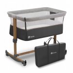 O structura stabila din otel, cu un furnir care imita lemnul si culori neutre, face ca designul patutului sa fie atemporal. Rama pliabila si geanta fac produsul usor de transportat si depozitat.