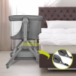 Patut co-sleeper Leonie Plus Lionelo pliabil cu sistem de leganare gri