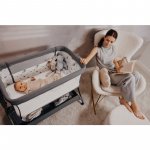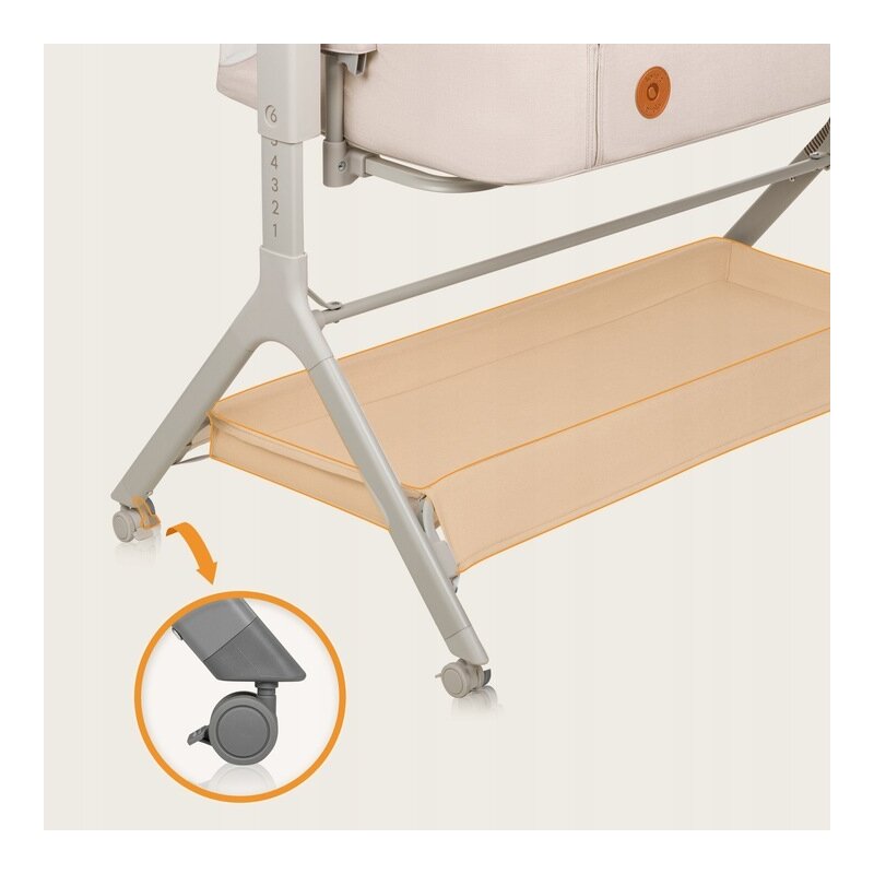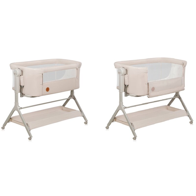 Patut co-sleeper Lionelo Leonie Plus pliabil cu sistem de leganare bej