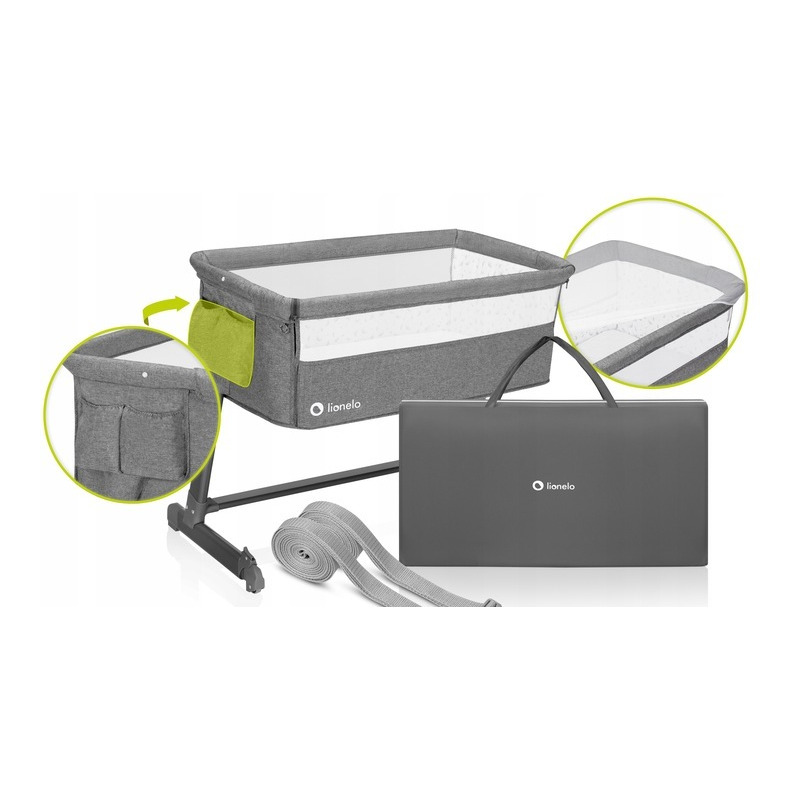 Patut co-sleeper Lionelo Theo 2 in 1 cu setare unghiulara Grey Stone