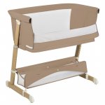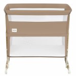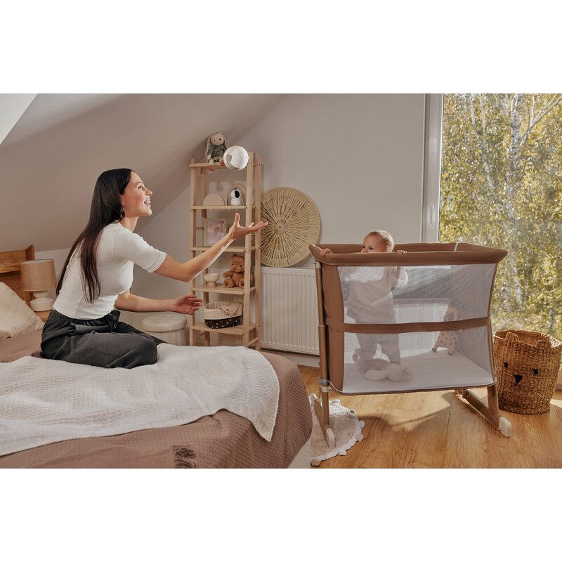 Dupa deschiderea panoului lateral si fixarea patutului cu curelele atasate, poate fi utilizat ca patut de co-sleeping, permitand accesul facil la bebelus.
