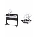 Partea laterala a patutului, care se desface cu fermoar, îsi va oferi confort si acces usor la bebelus. Patutul este prevazut si cu o centura speciala pentru blocare, si blocarea rotilor pentru a preveni miscarea necontrolata.