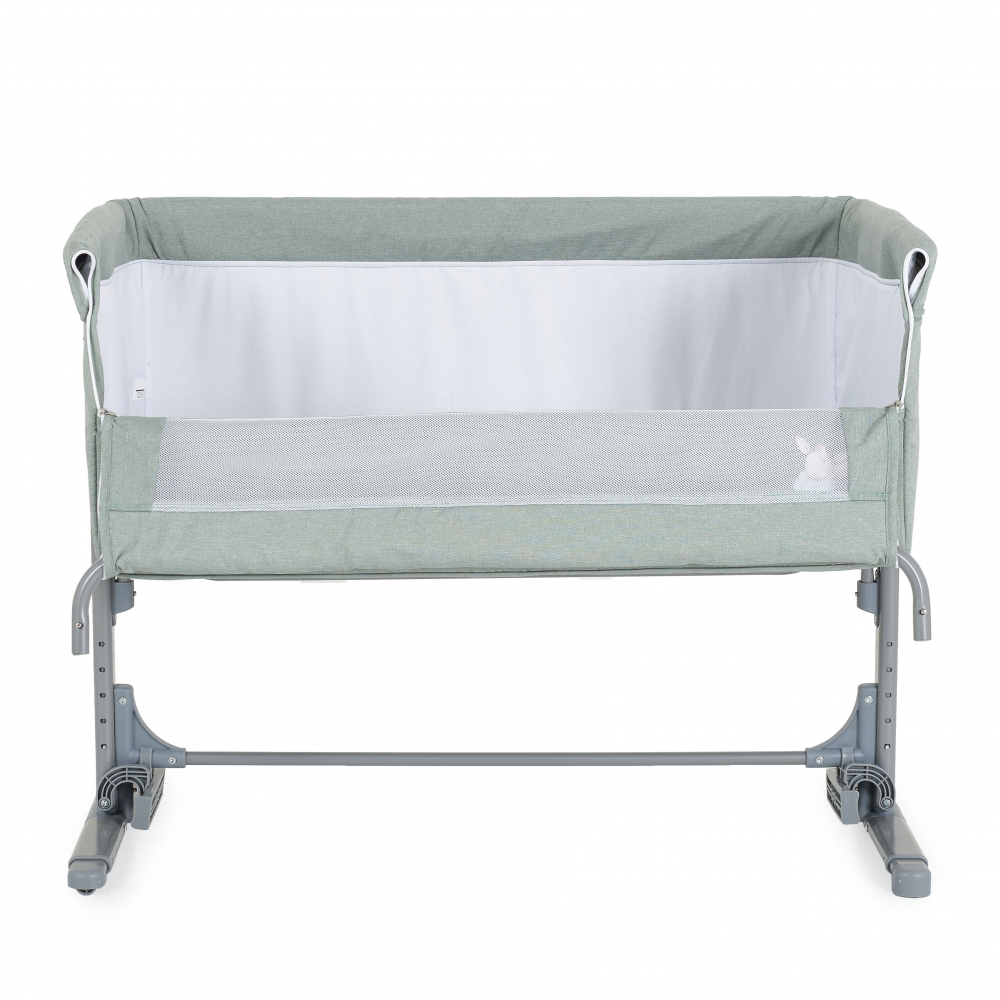 Patut Co-Sleeper Moni Mystery Green 93x69x72-84 cm multifunctional cu laterala culisanta,functie leganare,pozitie anti-reflux, 5 pozitii de reglare a inaltimii,saltea si geanta transport incluse