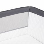 Plasa transparenta in perete si partea detasabila a patutului asigura o circulatie optima a aerului si le permite parintilor sa supravegheze copilul in mod continuu.