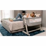 Setul modelului Theo include curele care permit o fixare stabila a patutului de patul parintilor.
