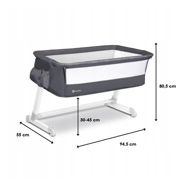 Patut co-sleeper Theo 2 in 1 cu setare unghiulara reglabil Dark Grey Lionelo