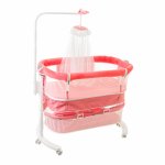 Patut Co-Sleeping cu doua nivele spatiu de depozitare si Baldachin Coral