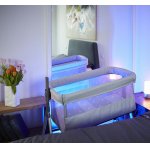 Datorita panoului lateral detasabil si posibilitatii de a muta in lateral intregul pat de pe cadru (pana la 16 cm), acesta poate fi amplasat cu usurinta chiar langa patul tau.