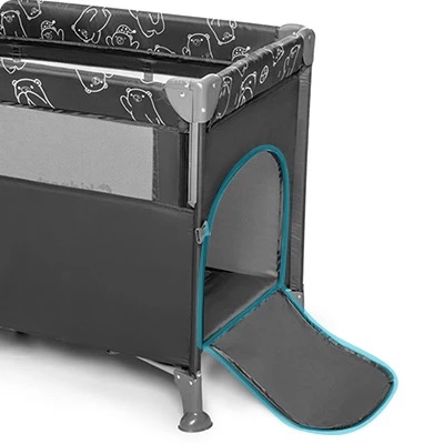 * Echipat cu baza dubla, acesta va permite sa ii reglati inaltimea saltelei in functie de nevoile copilului. In plus, intrarea laterala ofera acces usor la bebelus.