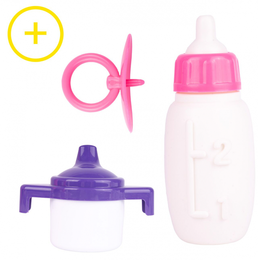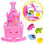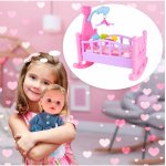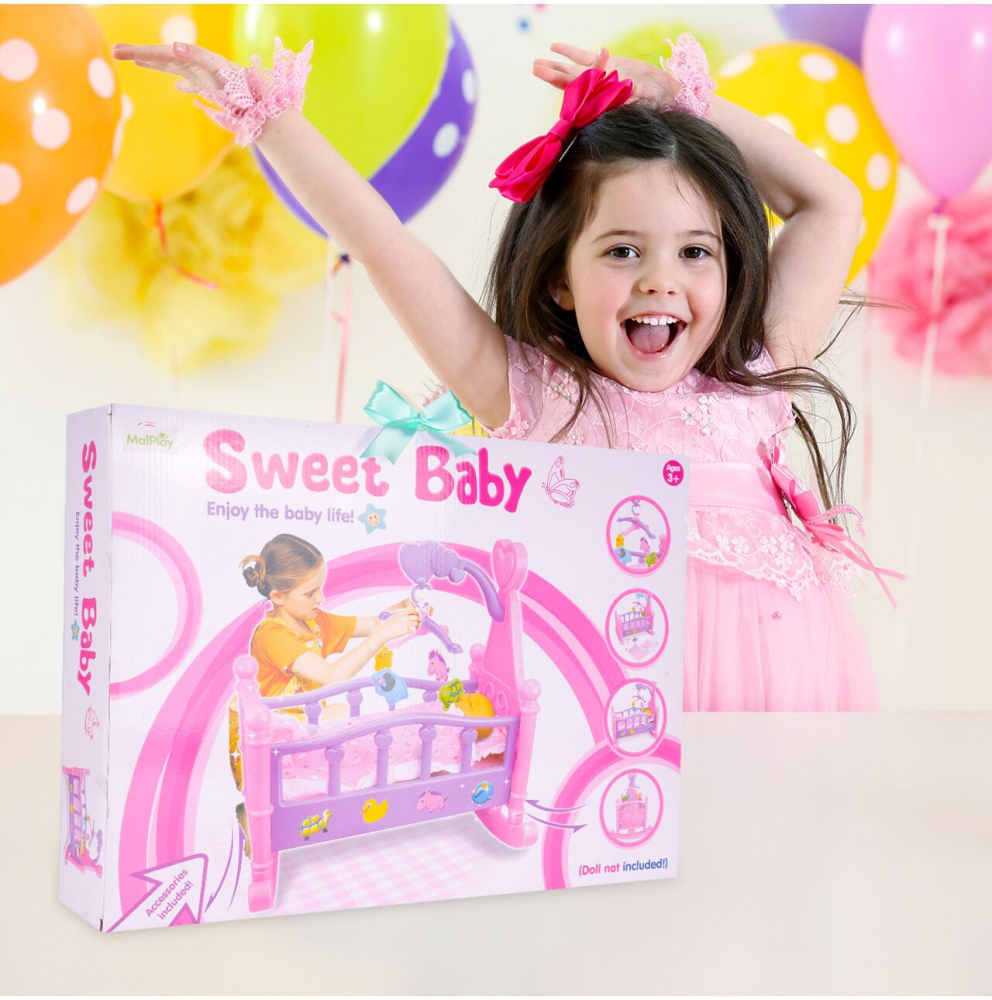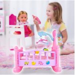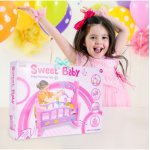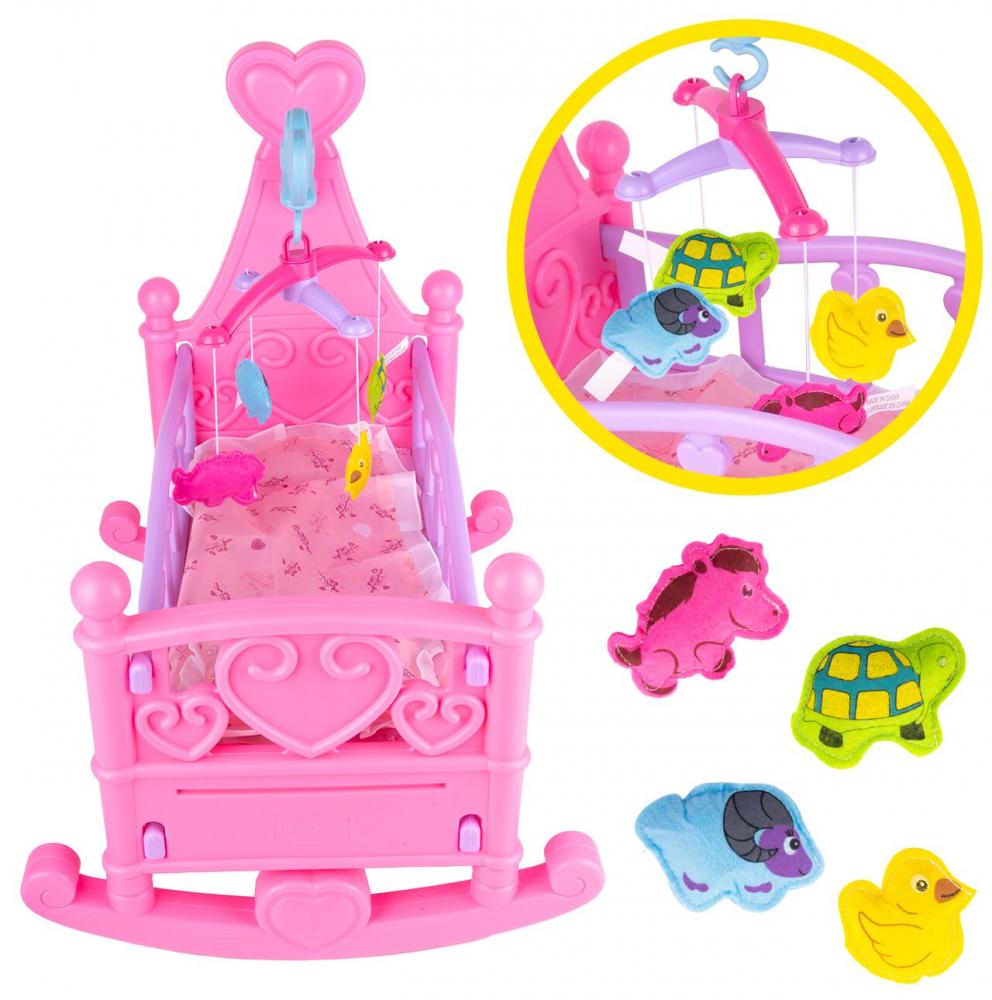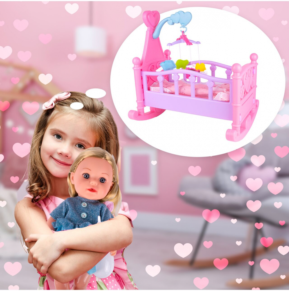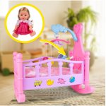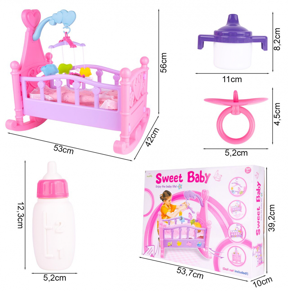 Patut de tip balansoar pentru papusi, cu carusel suspendat, suzeta si biberon incluse, Sweet Baby, 53 x 42 x 56cm