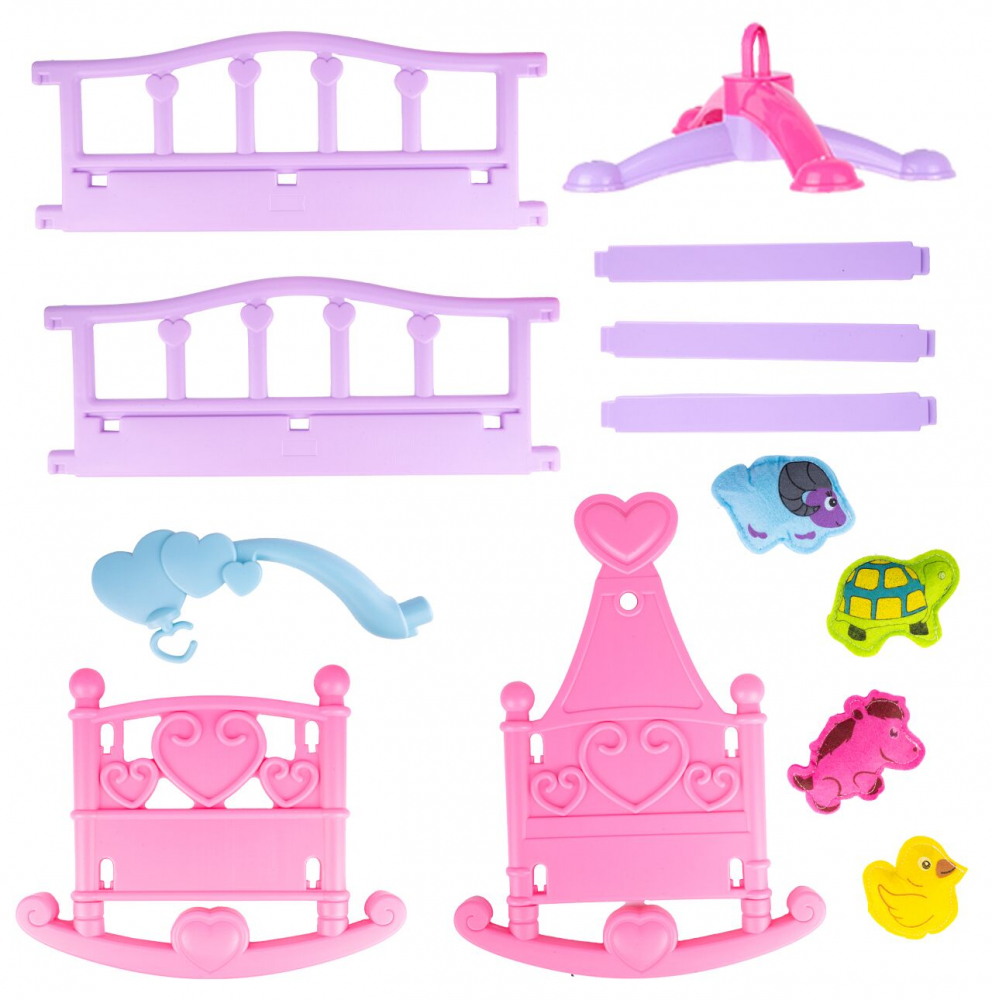 * Patutul este foarte usor de asamblat si dezasamblat: doar cativa pasi simpli sunt suficienti pentru a pregati un pat de joaca pentru papusa ta.
