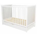 Patut din lemn 120 x 60 cm multifunctional cu sertar si somiera reglabila Nichiduta Cezar Alb