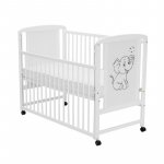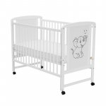Patut din lemn Qmini Timmi Elephant 120x60 cm cu laterala culisanta Alb