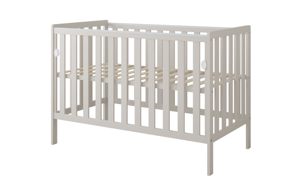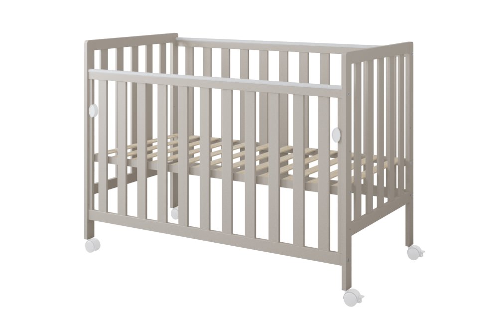 Patut din lemn si MDF pentru copii Nichiduta Bambi Cashmere cu laterala culisanta,roti cu blocare, vopsele ecologice pe baza de apa, margini rotunjite, dimensiuni interioare 120x60 cm