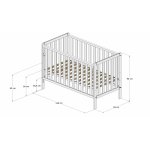 - Patutul are dimensiuni interioare standard de 120x60 cm, compatibile cu majoritatea saltelelor pentru bebelusi disponibile pe piata.