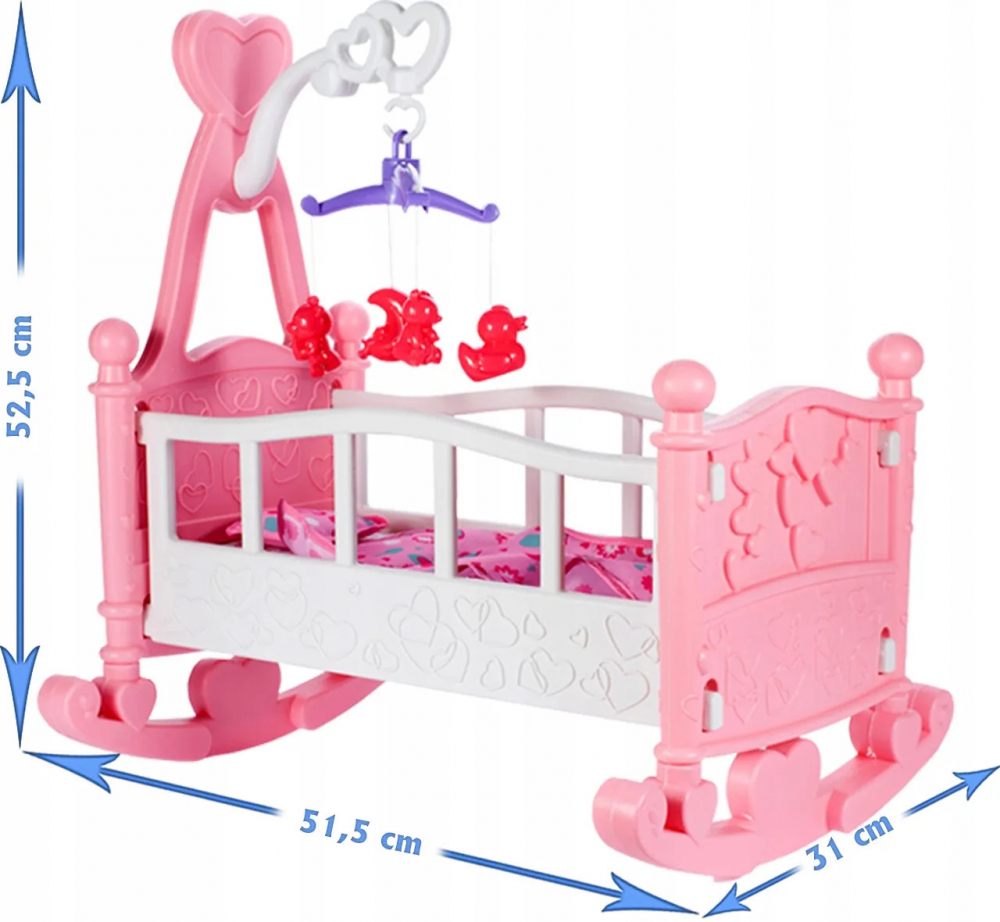 * Datorita faptului ca leaganul este lung, in el se va potrivi o papusa, un ursulet de plus de pana la 45 cm inaltime!