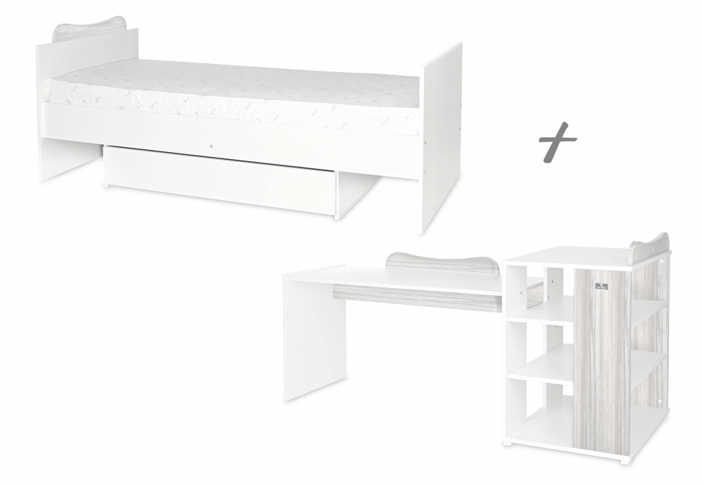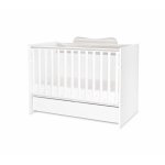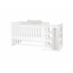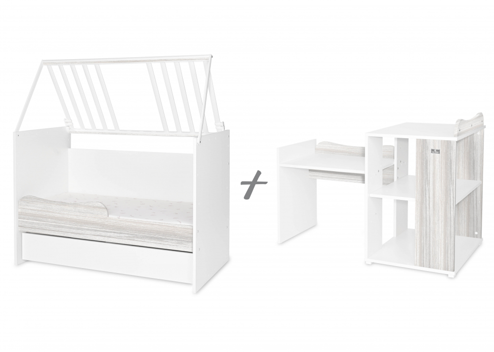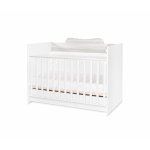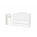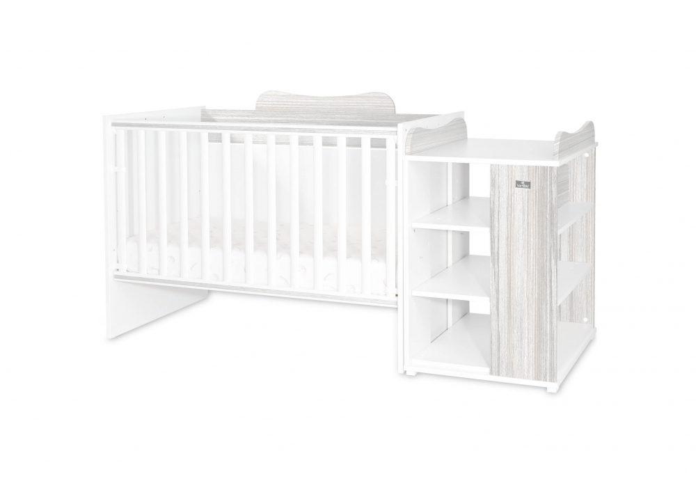 - patuţul pentru nou-născut este de dimensiuni de 60x120 cm, cu grilă culisantă pe două nivele, o comodă mare convenabilă cu trei rafturi și o masă de înfășat, cu opțiunea de asamblare pe stânga cât și pe dreapta.
