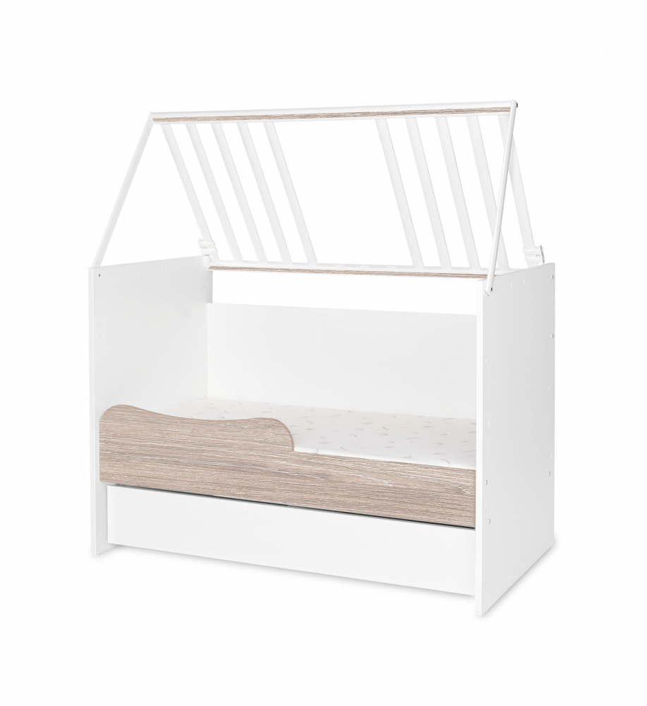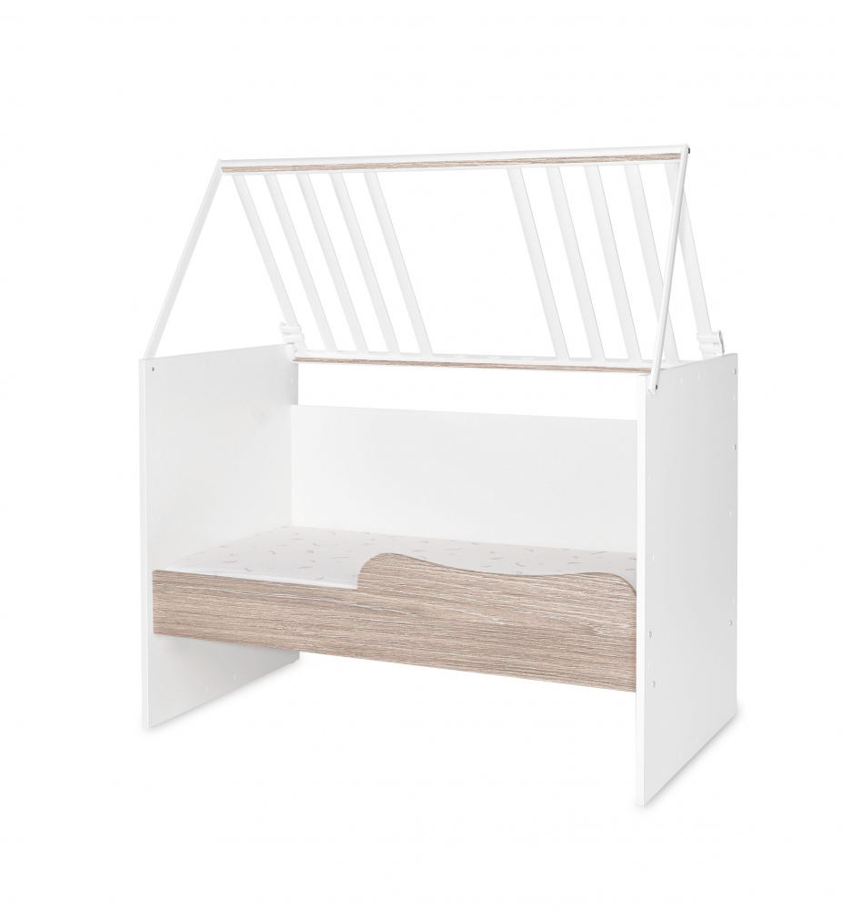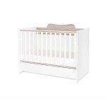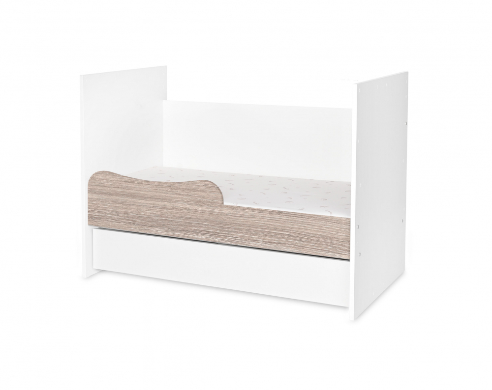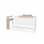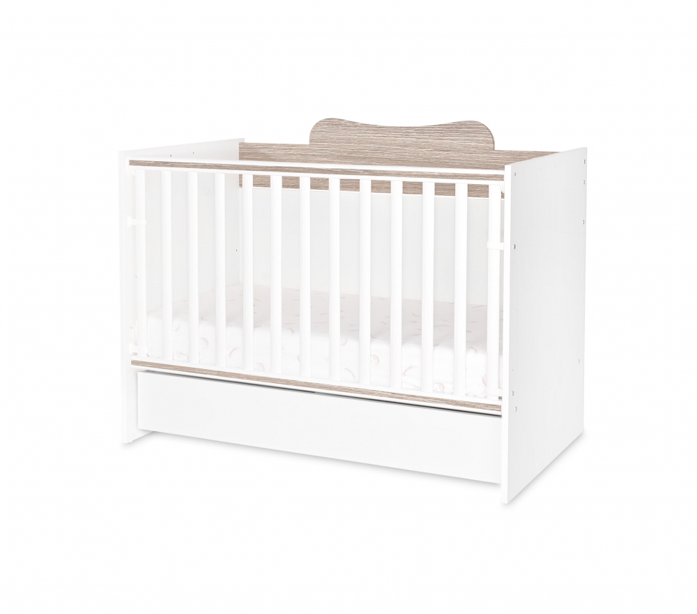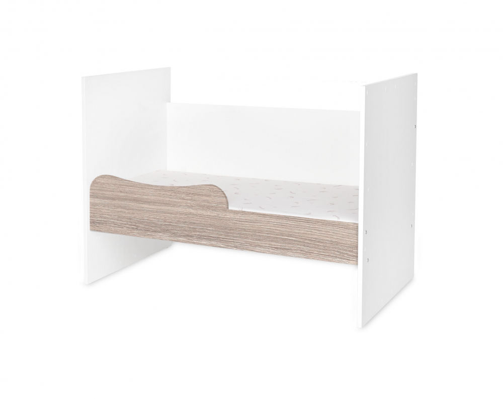 - patuţul pentru nou-născut este de dimensiuni de 60x120 cm, cu grilă culisantă pe două nivele, o comodă mare convenabilă cu trei rafturi și o masă de înfășat, cu opțiunea de asamblare pe stânga cât și pe dreapta.
