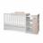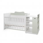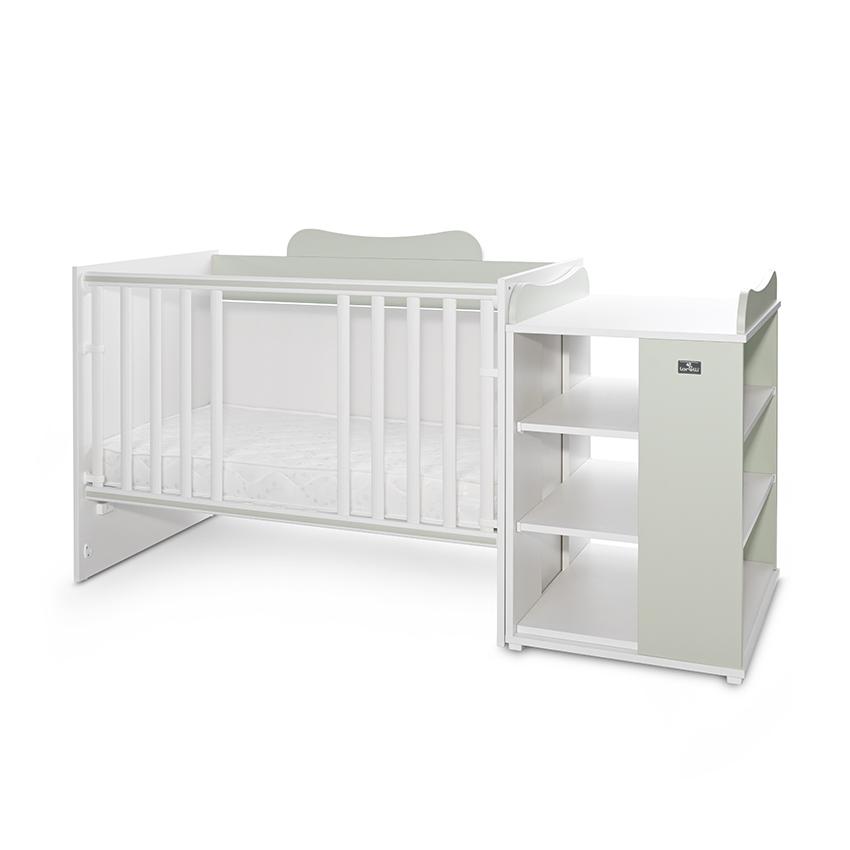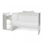 - patuţul pentru nou-născut este de dimensiuni de 60x120 cm, cu grilă culisantă pe două nivele, o comodă mare convenabilă cu trei rafturi și o masă de înfășat, cu opțiunea de asamblare pe stânga cât și pe dreapta.