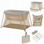 Patut multifunctional Lionelo Alice Bej 3 in 1 pliabil, 0 luni+, 2 trepte de inaltime pentru saltea, material rezistent Oxford 300D, cu iesire laterala, geanta de transport, pana 15 kg, 104x70x74 cm