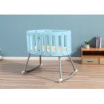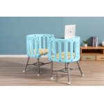 Patut multifunctional pentru copii, 3 in 1 Little Mom Blue, cu 3 configuratii distincte, cadru din otel, cu picioruse de balansare, Roti aditionale, Plasa de tantari si Salteluta galbena inclusa, dimensiune 92x55x79 cm