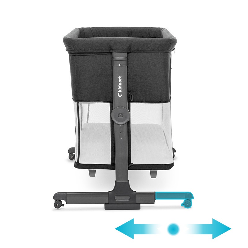 * Picioarele pneumatice permit mutarea patutului aproape de patul parintilor, asigurand o conexiune sigura. In plus, cele 4 roti cu blocare faciliteaza mutarea patutului si il blocheaza ferm in locul dorit, ceea ce creste confortul si functionalitatea.