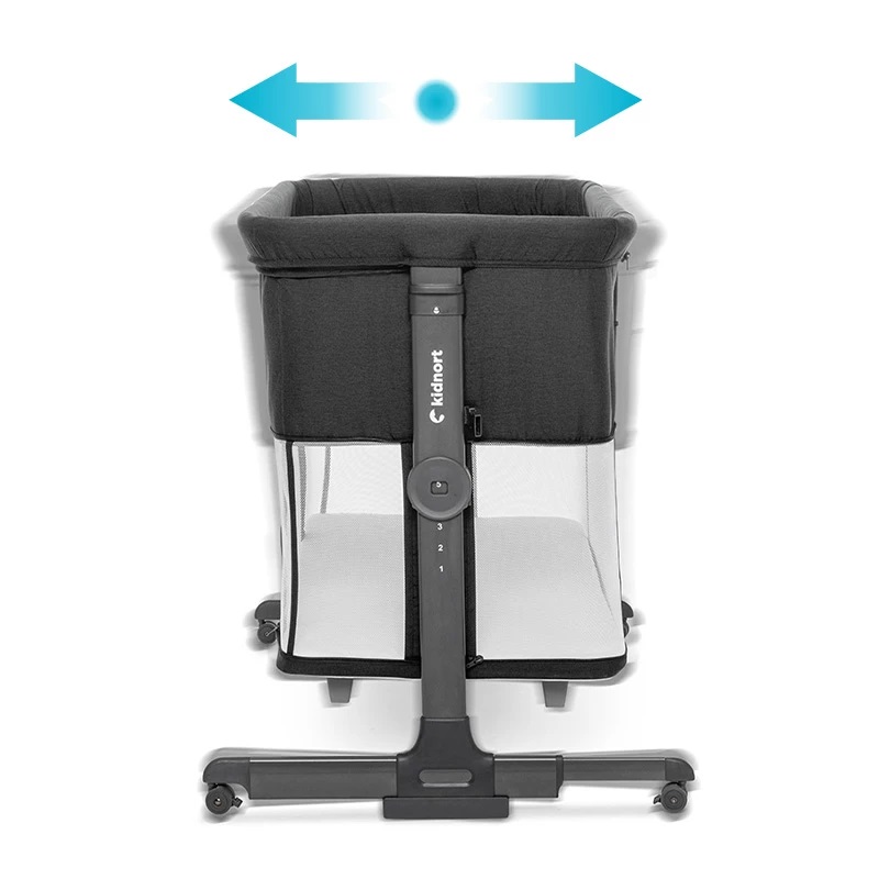 * Picioarele pneumatice permit mutarea patutului aproape de patul parintilor, asigurand o conexiune sigura. In plus, cele 4 roti cu blocare faciliteaza mutarea patutului si il blocheaza ferm in locul dorit, ceea ce creste confortul si functionalitatea.
