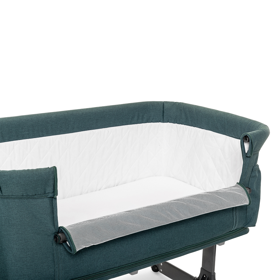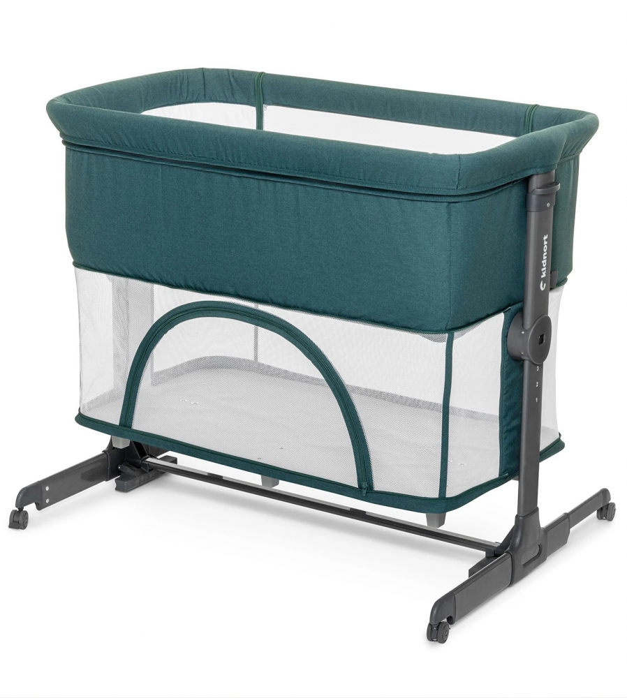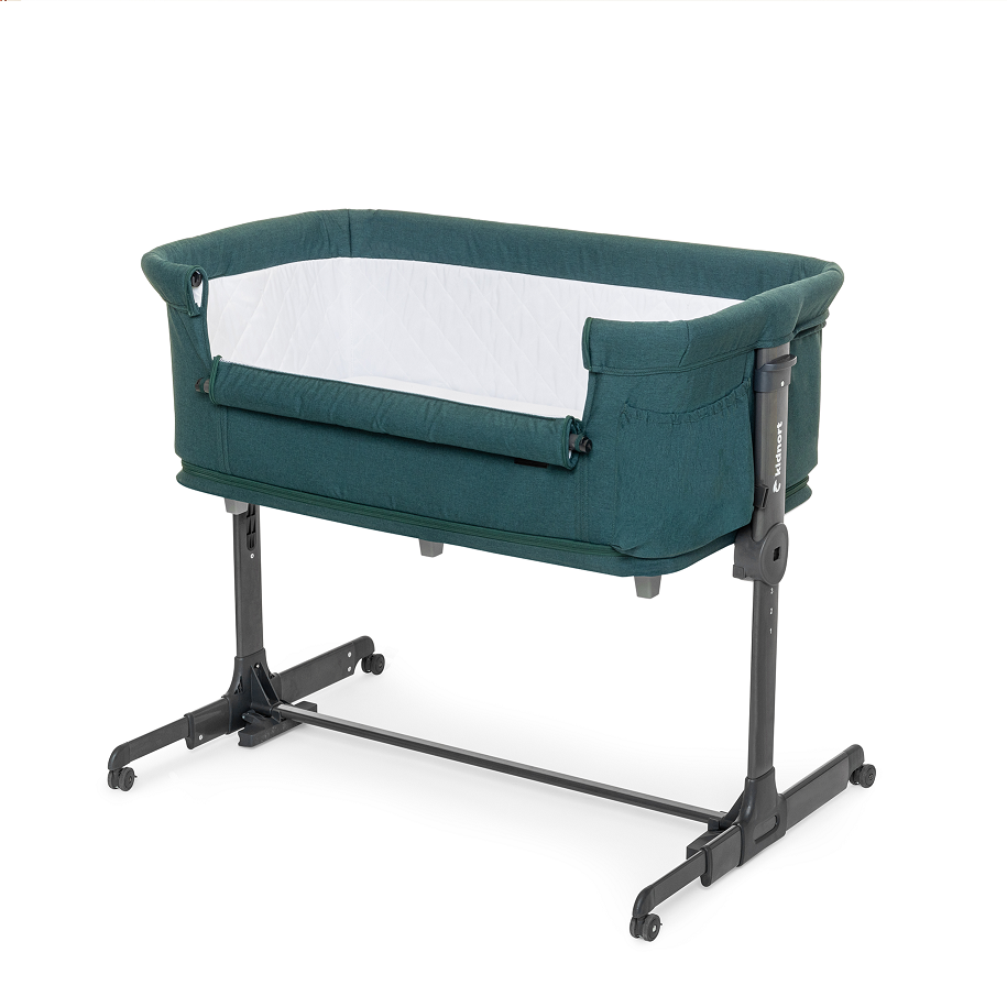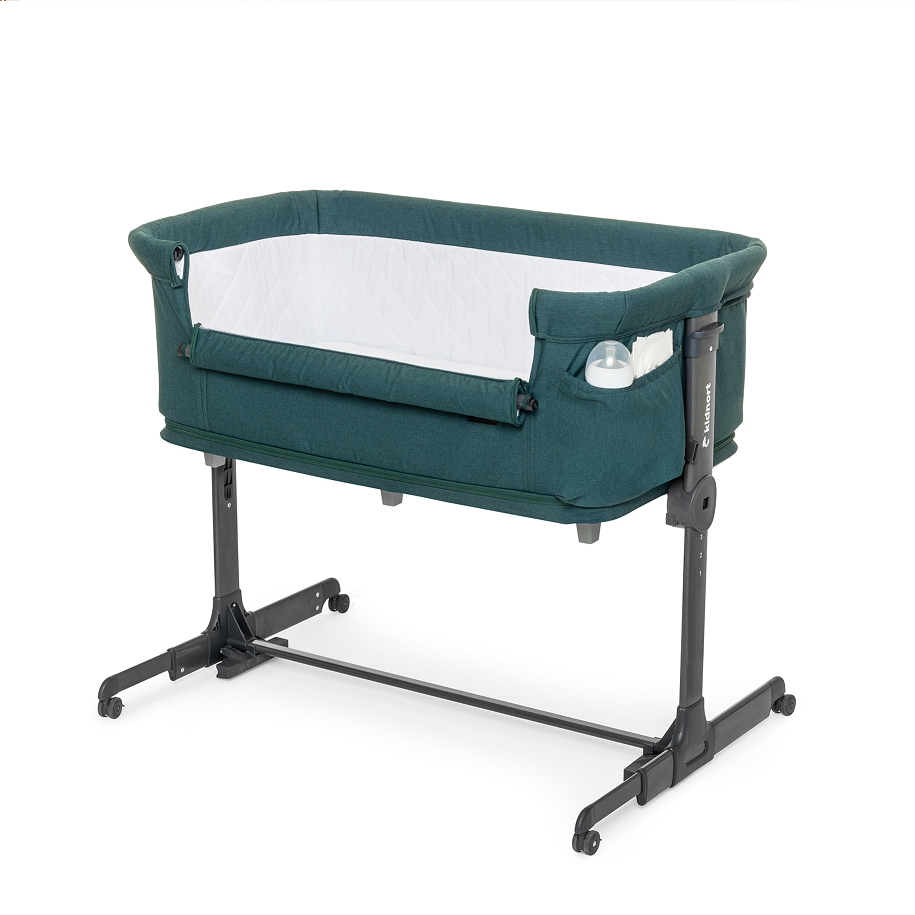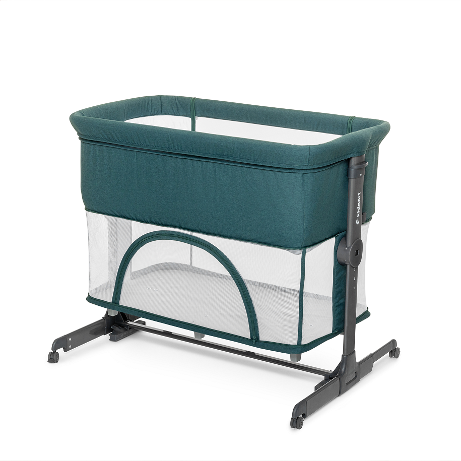 Patut multifunctonal tip co-sleeper si tarc de joaca pentru copii, cu leganare, intrare laterala, Kidnort Snackskal Green, greutate articol 8.7 kg