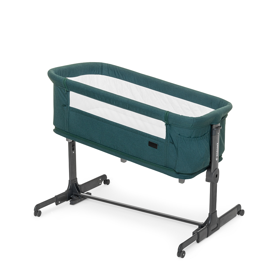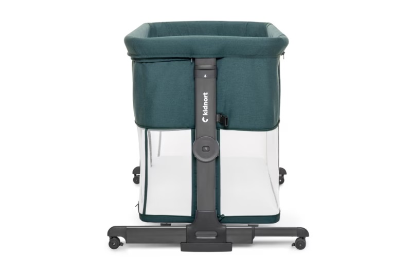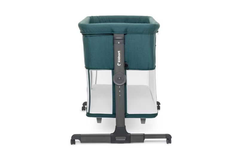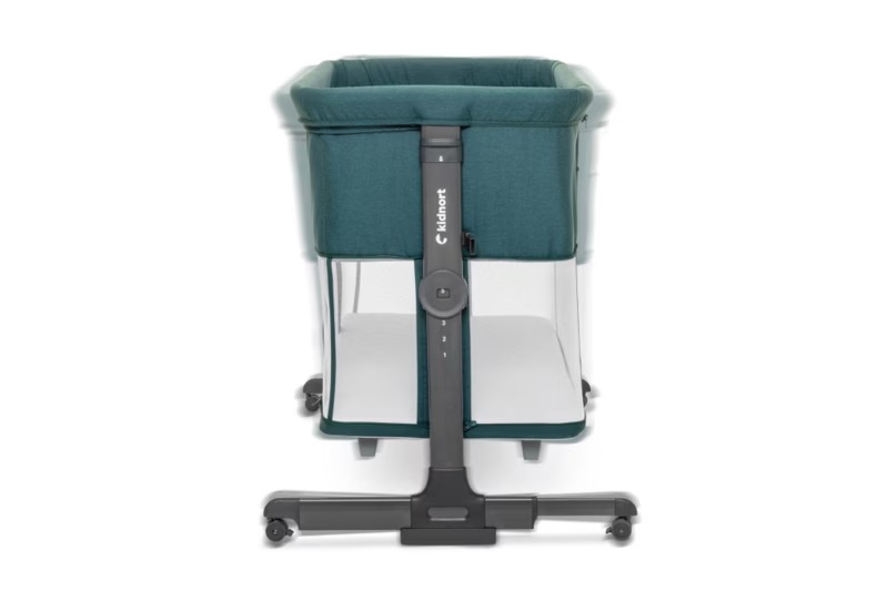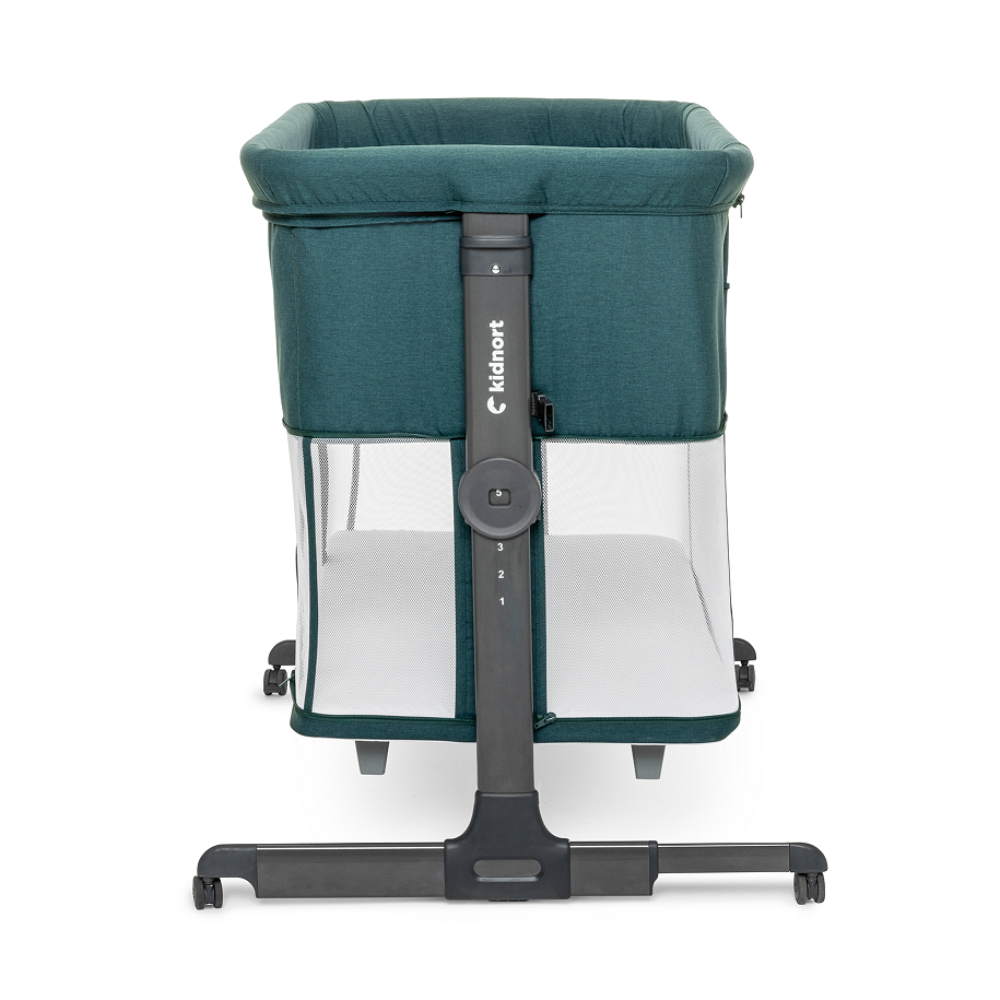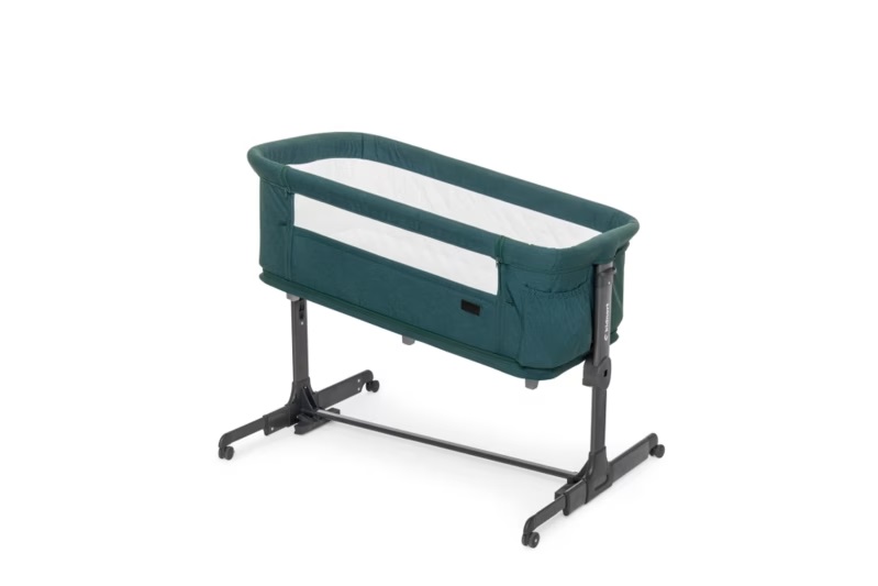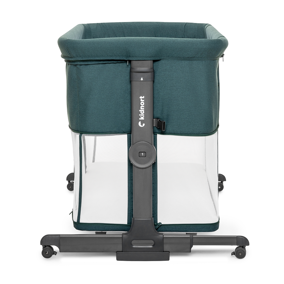 Patut multifunctonal tip co-sleeper si tarc de joaca pentru copii, cu leganare, intrare laterala, Kidnort Snackskal Green, greutate articol 8.7 kg